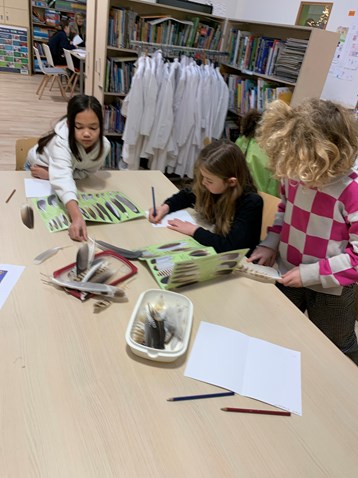 Met een binoculair (ik noemde het een microscoop) de bouw van een veer bekijken en natekenen.