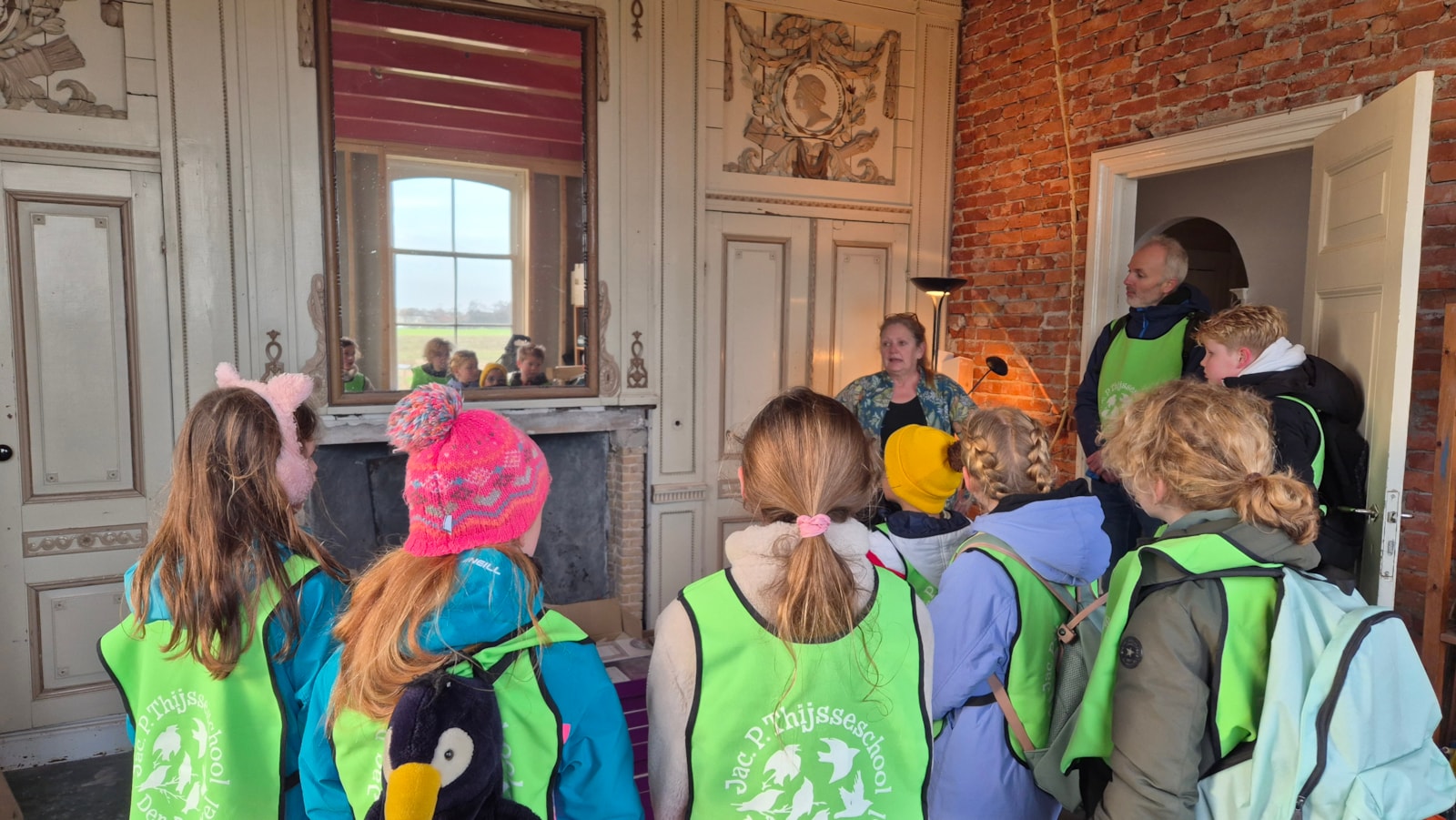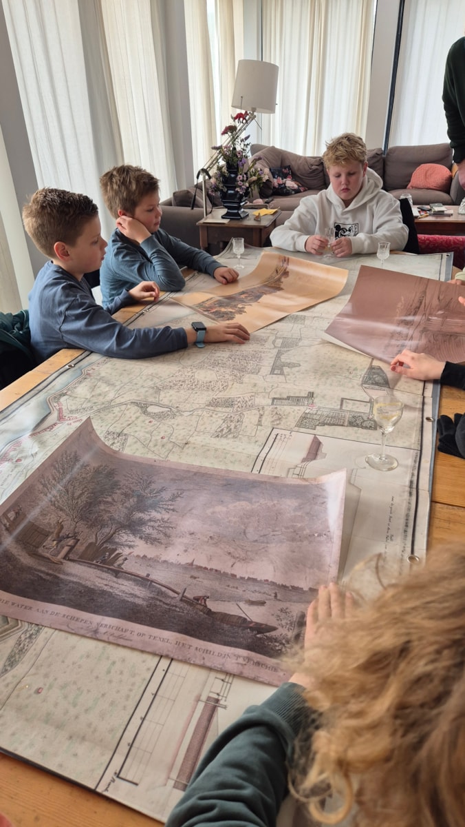 Brakenstein zelf was vroeger een veel groter huis. In de tijd van de Pruiken en Revoluties woonde Leendert den Berger in huize Brakestein, hij was lid van de Prinsgezinden en een hele slimme man. We kregen een rondleiding door Vibeke Roeper, zij is samen met Diederick Wildeman eigenaar van huize Brakestein en zijn dit huis helemaal aan het renoveren. We mochten een kijkje nemen in de ontvangstkamer en konden het houtwerk bewonderen dat dus al heel oud is. In de keuken kregen de kinderen, onder het genot van een glaasje warme appelsap, van Vibeke informatie over huize Brakestein, Texel in de 18e eeuw en hebben we de oude kaarten van Texel bekeken.