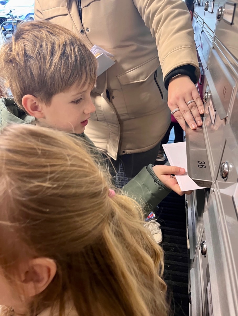 Leerlingen hadden zelf prachtige kerstkaarten gemaakt die ze uitdeelde aan de bewoners in het Eethuys.